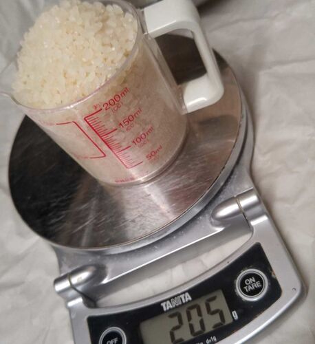 前回は米を炊くのにこんな道具を使っているという話をしました。 今回はそれを使って米を炊きます。 計量カップに米を入れて、ボウルに移す うちの200mlの計量カップだと、少し山盛りになるくらい入れて190gくらいでした。 200mlだったら200gだろが!と思っ…