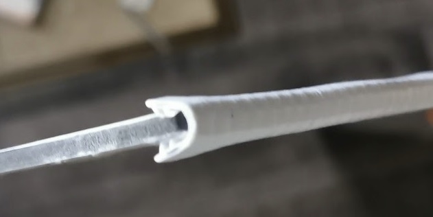 このドアエッジモールは、解体してみるとこのように内部に金属のバネのようなものが入っていました。(販売店では写真内の説明でその旨明記はされています)