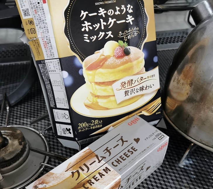 というわけで、前回のタルト作りで余ったクリームチーズの消化を兼ねて、クリームチーズ風ホットケーキを作ってみました。